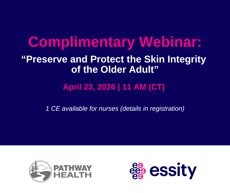 Join Pathway Health and Essity for the complimentary webinar “Preserve and Protect the Skin Integrity of the Older Adult.” Learn about factors that increase the risk of skin breakdown in older adults and review best practices for prevention, including risk assessments, personalized plans, and targeted interventions to maintain skin health.