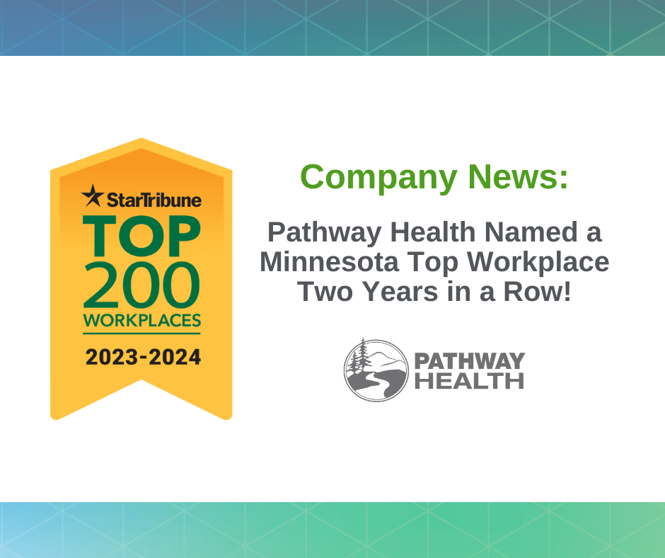 Pathway Health is proud to announce that it has been named one of the Top 200 Workplaces in Minnesota for a second year in a row and a Top 25 Small Employer by the Star Tribune!